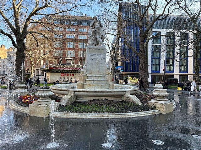 The Shakespeare Fountain has stood at the center of Leicester Square since 1874, part of a Victorian project led by Albert Grant to turn the space into a public garden. Grant funded the transformation and had the marble statue of Shakespeare installed as the focal point, modeled after the one in Westminster Abbey. In the statue, Shakespeare holds a scroll that reads, “There is no darkness but ignorance". The fountain was meant as a tribute not just to the playwright, but to the square’s long standing ties to London’s entertainment scene.