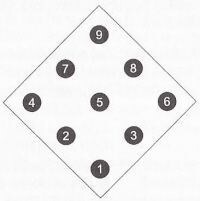 Kuželky jsou rozestavěné do kosočtverce a každá má svůj název.