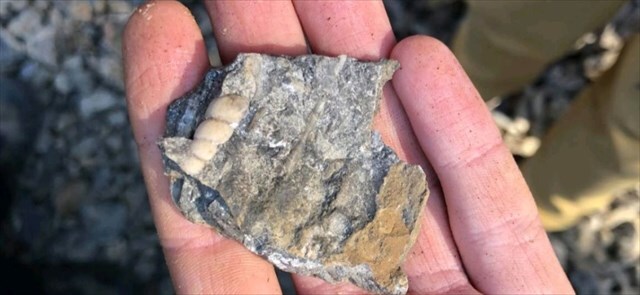 2) Podrobně prozkoumejte kamennou suť v okolí úvodek. Pokuste se v ní nalézt alespoň jednu zkamenělinu (výše najdete podrobný návod) a charakterizujte její tvar a velikost. Dobrovolně také můžete definovat její rod.