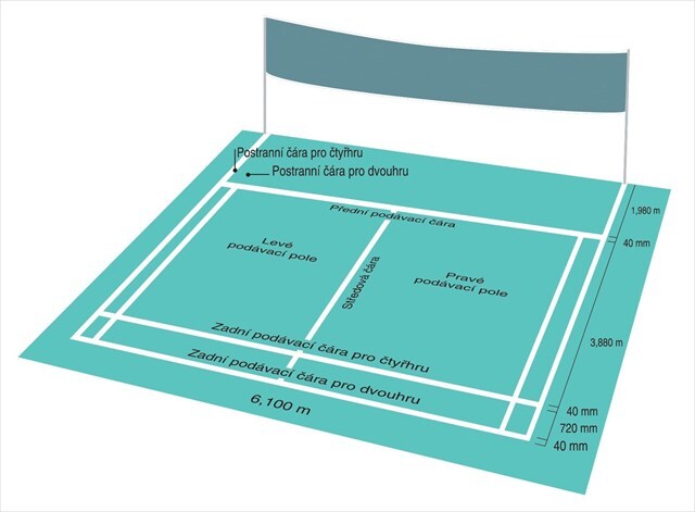 V badmintonu rozlišujeme kurt na dvouhru a čtyřhru. Singlový kurt na badminton je široký 5,18 m a dlouhý 13,40 m. Deblový kurt má stejnou délku, avšak se liší v šířce, která je 6,10 m.Všechny strany jsou pravoúhlé a hrací plocha je označena lajnami širokými 40 mm. Čáry musejí být rozeznatelné od barvy kurtu, nejlépe bílé nebo žluté a jsou součástí hracího pole, které vymezují. Badmintonová síť je vysoká 1,55 m. Samotná síť by měla mít rozměry 76×610.