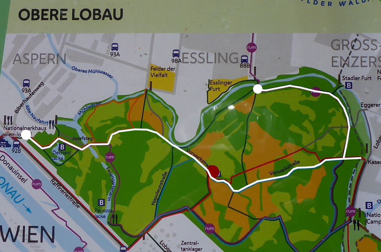 Dieser Multi führt quer durch die obere Lobau vom Nationalparkhaus lobAU über Josefsteg, Vorwerkstrasse und einem kleinen Abstecher zum Kasernbrückerl bis hin zur Eßlinger Furt, die ganze Strecke verläuft auf auch für Radfahrer freigegebenen Wegen und ist daher radfreundlich. Die Streckenlänge von Start bis zum Ende beträgt etwas mehr als 10km, das Finale ist dann noch ein gutes Stück entfernt. Die Terrainwertung entspricht der Länge der Strecke.