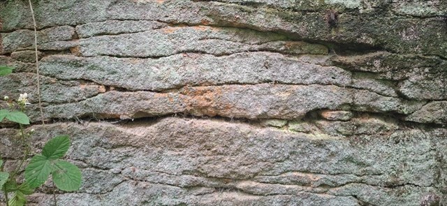 2) Podívejte se blíže na skalní odkryv na úvodních souřadnicích. Popište jeho strukturu a odhadněte, čím byla způsobena.