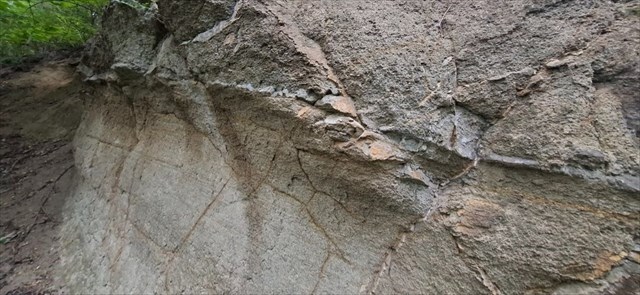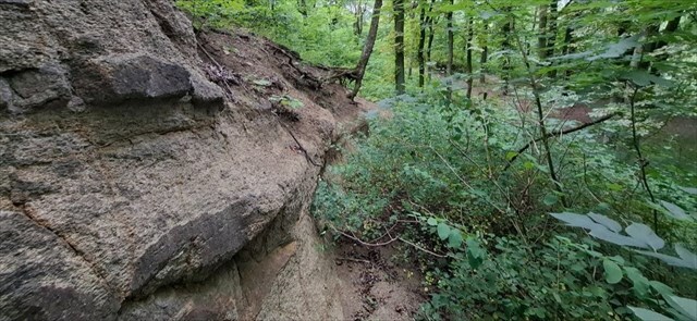 2) Dotkněte se odhaleného skalního odkryvu na úvodních souřadnicích. Jak byste popsali jeho strukturu a pevnost na dotek?