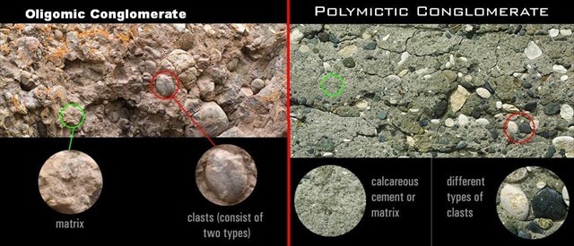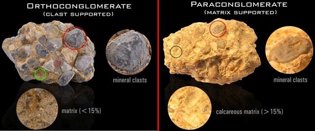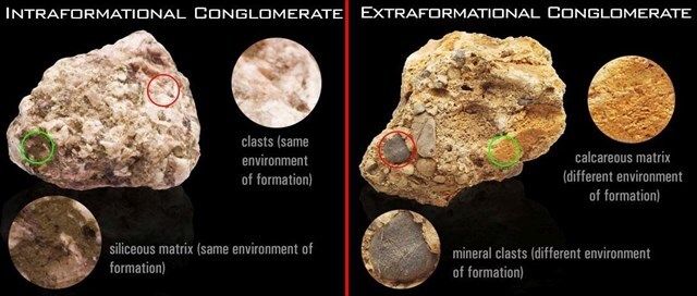 Intraformational Conglomerates: These contain an intra-basinal matrix, meaning that the clasts originate from the same sedimentary