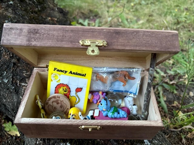 Interesse wecken und Spass haben, dass sind zumindest die ersten Anforderungen, um ans Geocaching herangeführt zu werden 😎... Insofern legen wir mal einen leichten Cache als Anlass des ersten eigenständigen Besuchs über einen längeren Zeitraum bei Oma und Opa für den heute 4-jährigen. In der Dose sind einige Kleinigkeiten zum Tauschen für NachwuchscacherInnen 😏...