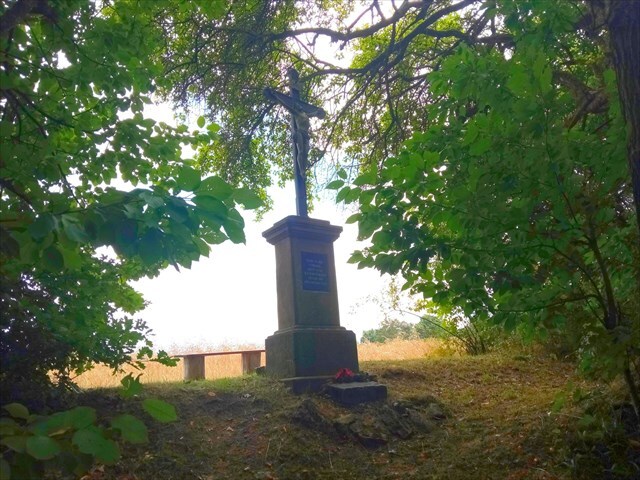 V těsné blízkosti kríže se nachází provizorní lavička. Místo je přímo vedle cesty, po které jezdí zahrádkáři, takže i tady si musíte dávat pozor na mudly.