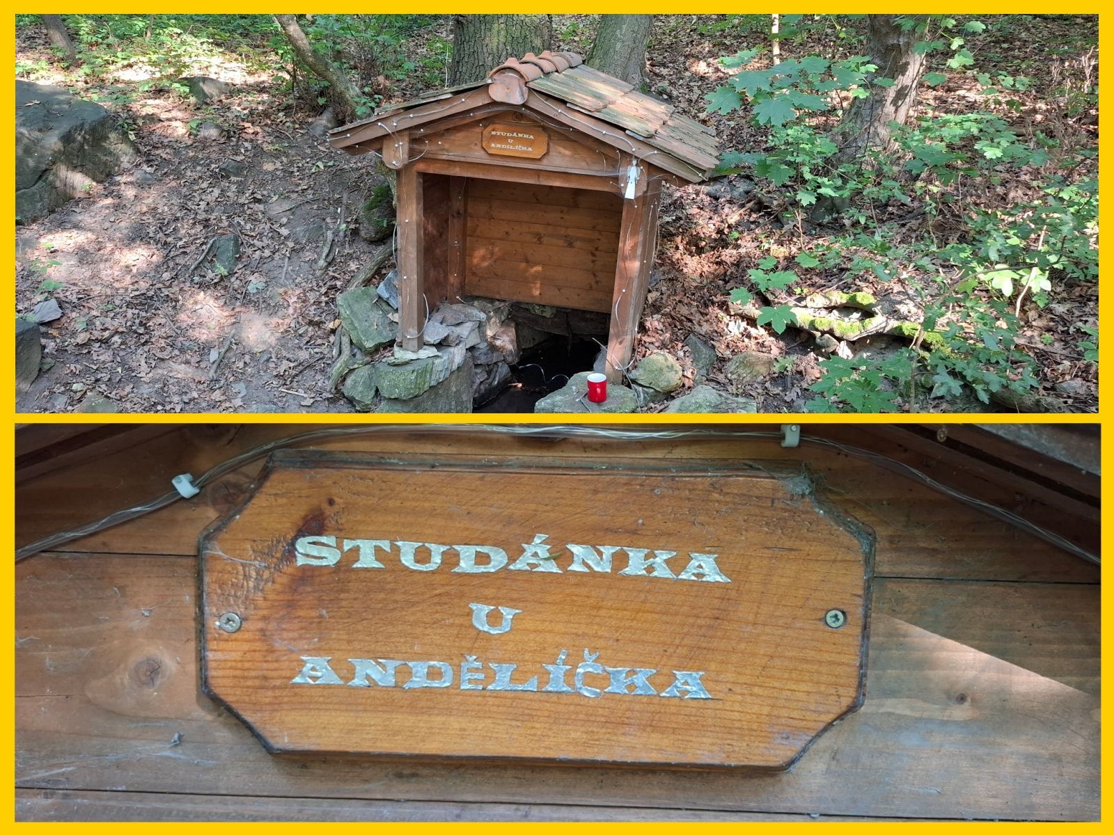 Studánka u Andělíčka je na okraji lesa, asi 20 m pod zatáčkou silnice od Středokluk k R7. Pramen vyvěrá ze skály pod kořeny dubu. Před lety byla nad pramenem umístěna dřevěná stříška s brontosaurem a je zřejmě občas čištěn. Název je odvozen od barokní sochy anděla, která stávala na druhé straně silnice, nad křižovatkou s polní cestou na okraji bývalého lomu.