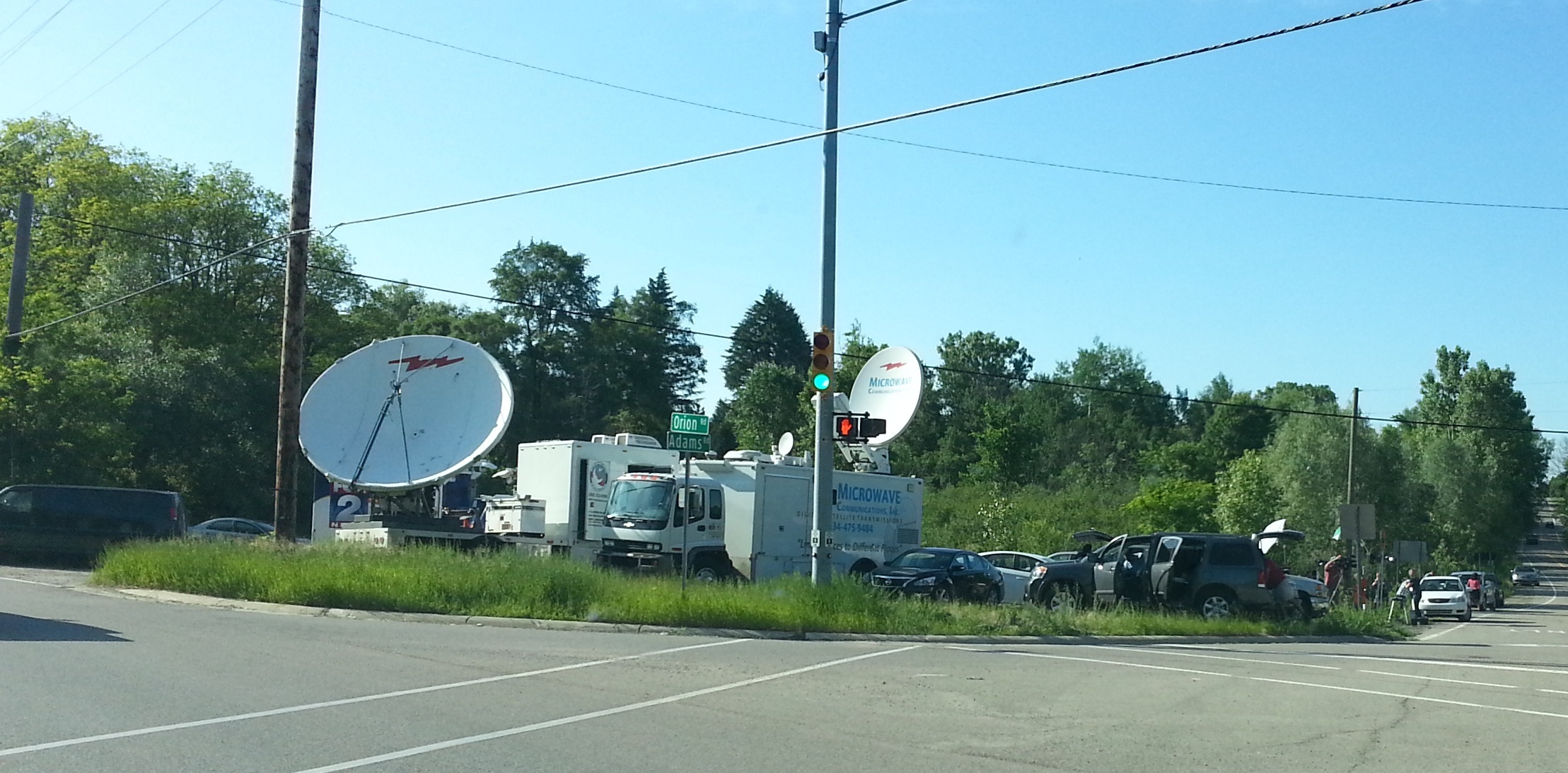 This hide is at the location of the media circus June 18th, 2013 while the FBI and others dug up a farm just up the street. I snapped this pic out my windshield from the posted coordinates as I was driving home from work.