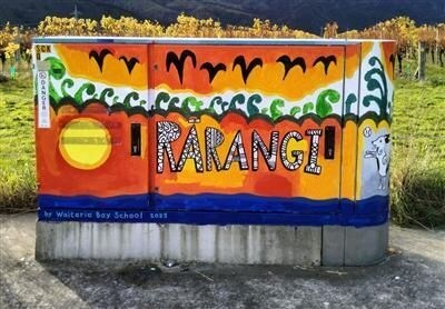 The artwork that inspired this cache was painted by the students of Waitaria Bay School whose relief teacher lives in Rarangi.