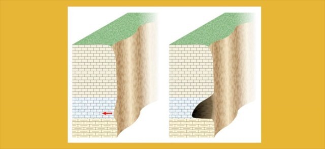 Zejméná v přírodě se tento jev projevuje vznikem rozmanitých tvarů a povrchů. Místa, která zůstávají pevná, vytvářejí ostřejší a výraznější linie, zatímco úseky, kde slabší materiál zmizel, působí měkčeji a nepravidelně. Celý proces je pomalý, ale neustále přetváří původní útvar v nové podoby.