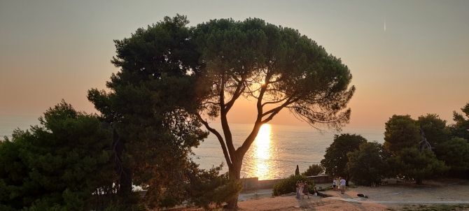 Botanical name Pinus pinea, also known as the Mediterranean stone pine is a tree from the pine family, Pinaceae. The tree is native to the Mediterranean region, occurring in Southern Europe and the Levant. The species was introduced into North Africa millennia ago, and is also naturalized in the Canary Islands, South Africa and New South Wales. Stone pines have been used and cultivated for their edible pine nuts since prehistoric times. They are widespread in horticultural cultivation as ornamental trees, planted in gardens and parks around the world. This plant has gained the Royal Horticultural Society's Award of Garden Merit. Stone pine in Brissago, on Lake Maggiore, Switzerland The stone pine is a coniferous evergreen tree that can exceed 25 metres (80 feet) in height, but 12–20 m (40–65 ft) is more typical. In youth, it is a bushy globe, in mid-age an umbrella canopy on a thick trunk, and, in maturity, a broad and flat crown over 8 m (26 ft) in width. The bark is thick, red-brown and deeply fissured into broad vertical plates.
