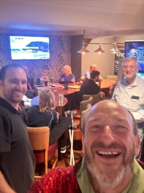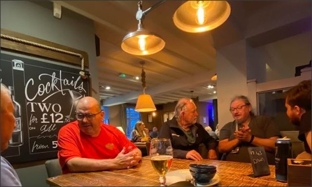 We have an area centre left hand side (by the fruit machine) as you go in the front entrance of the pub (not the car park entrance at the rear)....Since Covid times, our numbers have risen and seen us full to the brim! Great to see everyone having a good time. We had to gather up additional tables and chairs in an adjacent part of the bar! We keep saying that we might have to move to a slightly larger area but the current space serves us very well. You'll just have to carry on getting cosy!