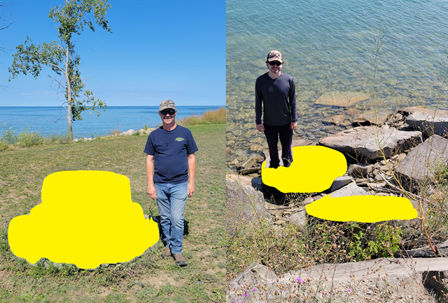 Look down by the water to the south of the posted coordinates. Here you will see two grindstones of about the same size and grade. Use these grindstones to answer the following questions. You can make your observations without climbing down to the rocks.