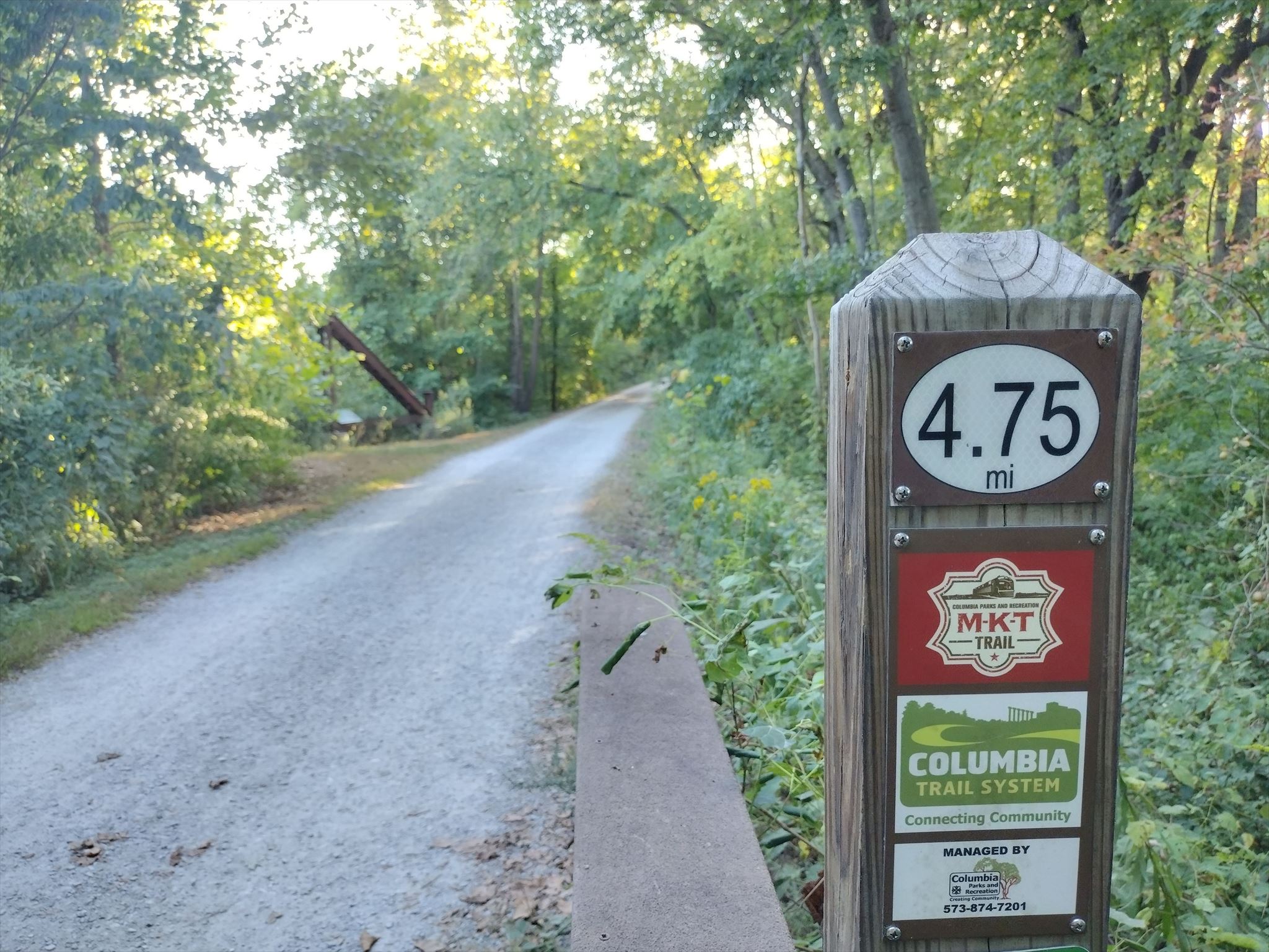 The MKT Nature and Fitness trail, 8.9 miles in length, stretches from Flat Branch Park in downtown Columbia all the way to Hindman Junction, just outside McBaine where it joins the Katy Trail.