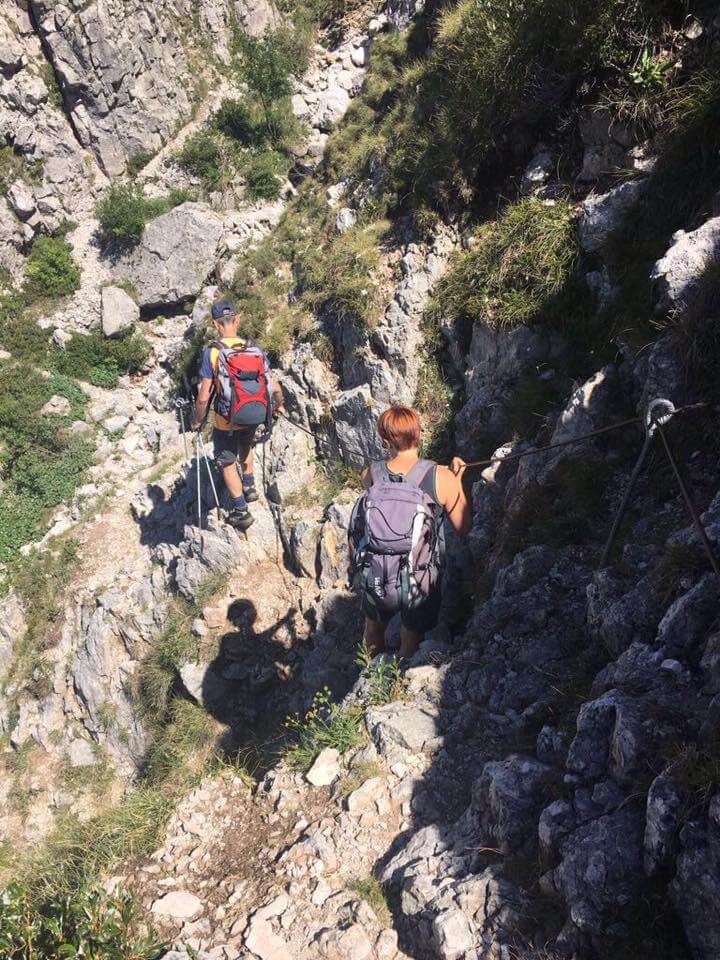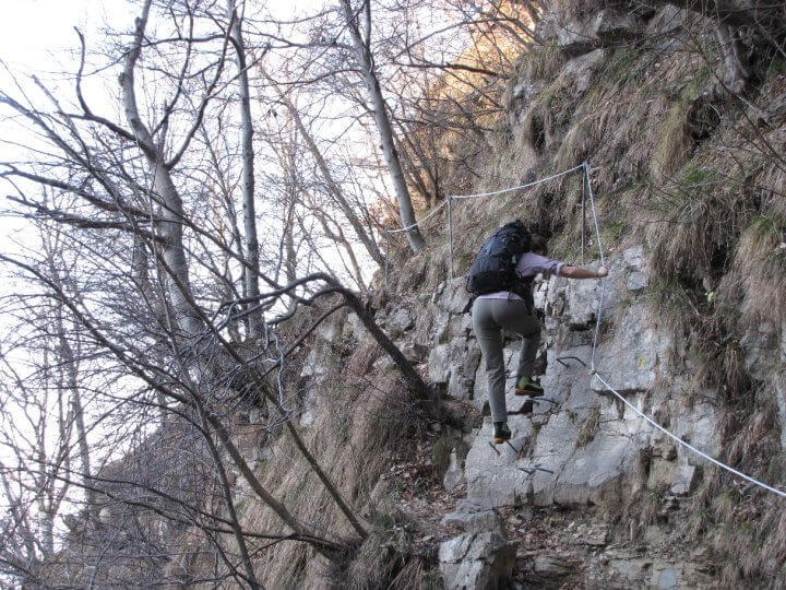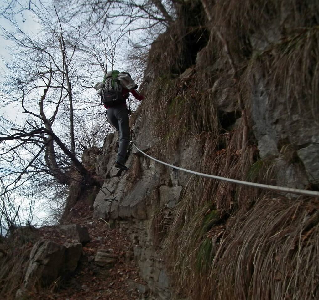 Proseguiamo lungo il sentiero e raggiungiamo un secondo tratto attrezzato con cui risaliamo una facile paretina (30' dalla prima catena -1h totali).