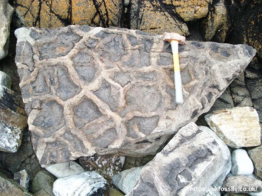 Les fentes de dessiccation sont des structures sédimentaires de contraction qui se forment dans des dépôts meubles riches en argile ou en limon lorsqu’ils subissent un assèchement rapide, généralement dans des environnements continentaux ou littoraux soumis à une alternance de phases humides et sèches. Le dessèchement de l'argile commence par le centre provoquant l’apparition de fissures polygonales plus ou moins régulières, souvent des hexagones en forme de creux. Si le phénomène est inversé, le dessèchement commence par les bords et les fentes ont une forme de cuvette.