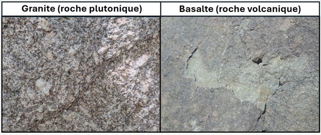 Cette texture cristalline différencie deux familles de roches magmatiques :