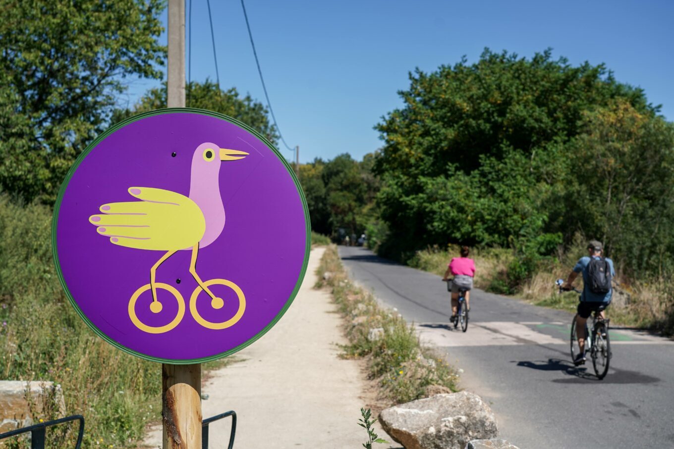 Il suivre le flèchage. Il est tout à fait possible d’emprunter le parcours à vélo.