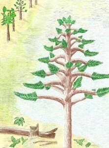 The closest living relatives are trees in the same botanical family, Araucariaceae. This includes the modern genus Araucaria, and specifically the Norfolk Island pine (Araucaria heterophylla) and the monkey puzzle tree (Araucaria araucana).