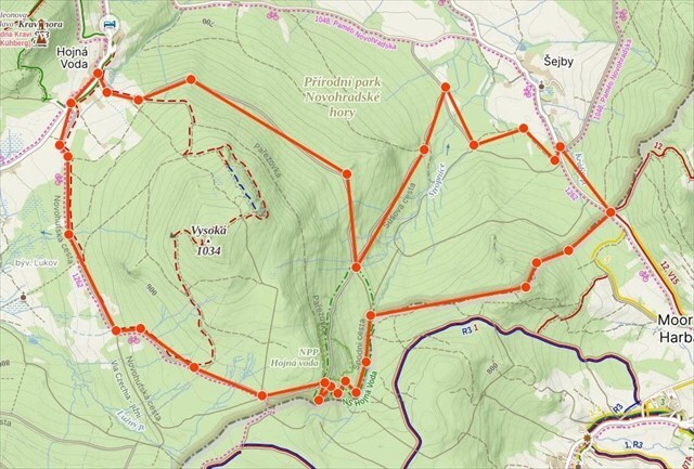 směru hodinových ručiček najdeme (snad?) cestu k NPP Hojná voda a odtud k