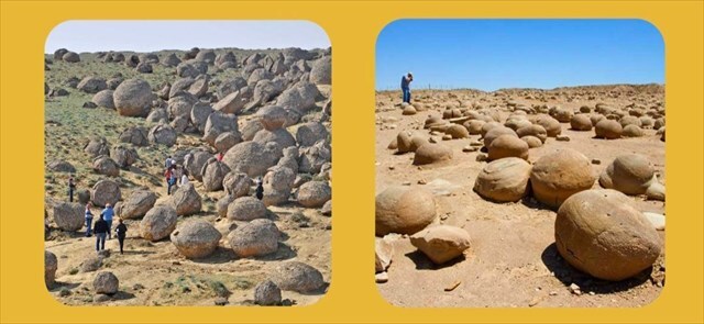 [2] Dělové koule, neboli „Cannonball Concretion“, jsou téměř dokonale kulovité konkrece, které mohou dosahovat průměru až několika metrů. Vznikaly v pískovcích a jílovcích, kde se minerály jako kalcit, siderit či oxidy železa usazovaly kolem centrálního jádra. Tyto útvary se hojně vyskytují například v oblasti Cannonball River v Severní Dakotě (USA).
