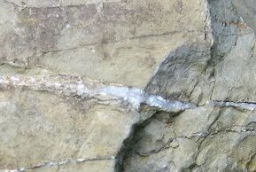 De l'eau chargée en calcaire coule dans ces fissures. Lentement, la calcite transportée par l'eau se dépose sur les bords de la fissure.