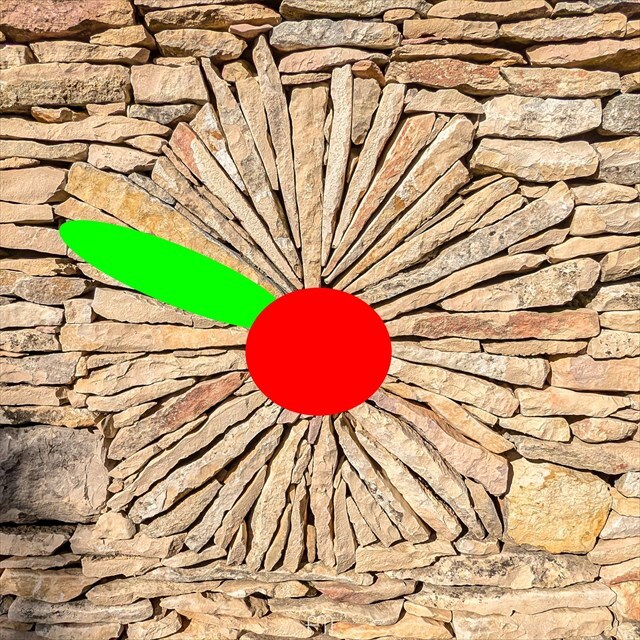 The last work is the wall of the sun, a marriage of mineral and plant, a dry stone wall in which a sun and a cypress are inserted.