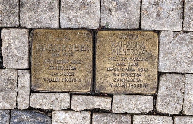 Poté vzpomeneme na Ing. Eugena (Evžena) Wienera a Katharinu (Kateřinu) Wienerovou na jejichž památku jsou poblíž vchodu do domu v ulici Schnirchova (dříve Malá Šternberkova) 1353/7, Praha 7 umístěny dva Kameny zmizelých.