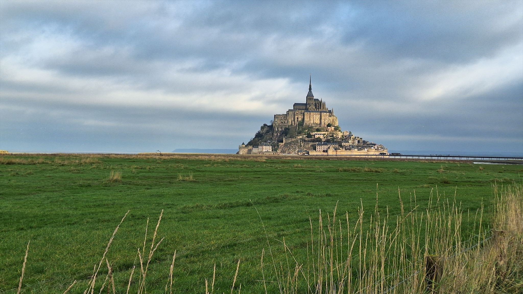 The history of Mont-Saint-Michel began in 708, when the archangel Michael is said to have asked Bishop Aubert to build a sanctuary there, which was soon replaced by a Benedictine abbey founded in 966. Having become a major spiritual, intellectual and political centre in the Middle Ages, the abbey welcomed pilgrims and sovereigns while fortifying itself to withstand conflicts, notably the Hundred Years' War, during which it remained impregnable. Transformed into a prison from the 17th to the 19th century, it thus escaped ruin before being classified as a historic monument in 1874 and restored. Today, it is home to a monastic community and is listed as a UNESCO World Heritage Site, remaining one of the most iconic sites in France.