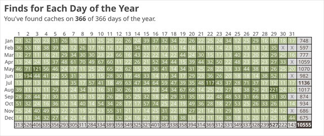 Placing this to celebrate hitting the daily double mark on my calendar finds per day grid. Am I a caching LOON-atic? Are you one too?