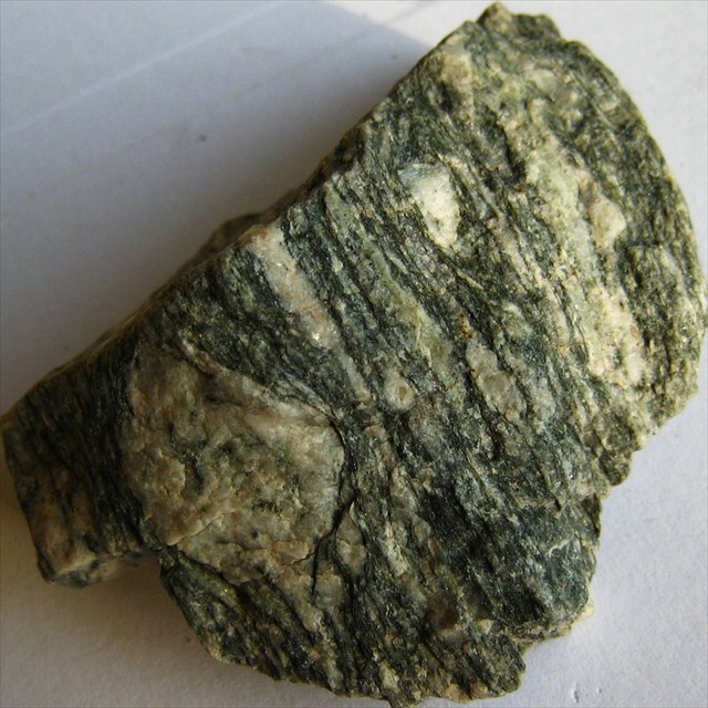 Gneiss can have a green tint if it contains amphibole, chlorite, or epidote.