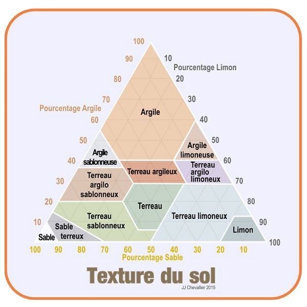 La texture du sol est basée sur le pourcentage des 3 éléments principaux le constituant (argile, sable et limons). Ces éléments ont une granulométrie (taille des grains) spécifique.