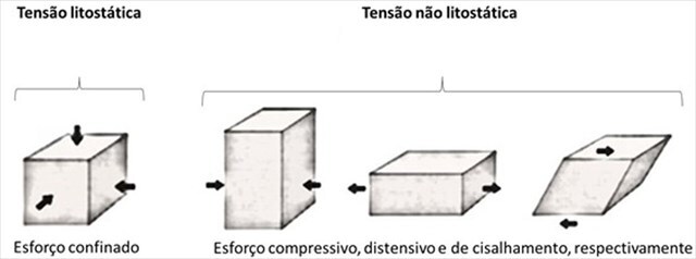 No interior da Terra existem tensões litostáticas e não litostáticas. A tensão litostática é aplicada igualmente em todas as direcções e provocando a redução do volume e o aumento da densidade das rochas.