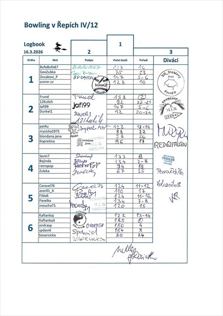Bowling v Repich IV/6, TB vyhral filda6 (138 bodu, draha 6)