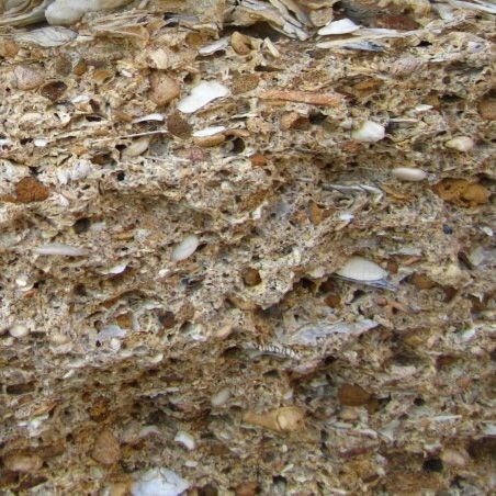 Au fil du temps, ces accumulations de coquilles se sont transformées en roche calcaire grâce à la pression des couches supérieures et à un ciment naturel qui a soudé les fragments entre eux.