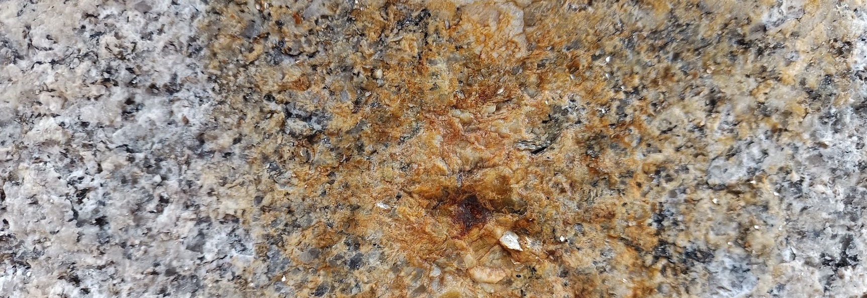 At the coordinates of this earthcache, it is possible to observe oxidized granite. This coloration suggests the presence of iron-containing minerals that, over time, reacted with oxygen and water. Among the minerals that may be associated with this type of alteration are iron sulfides such as pyrite or chalcopyrite, as well as iron-rich minerals present in the original granite, such as biotite.