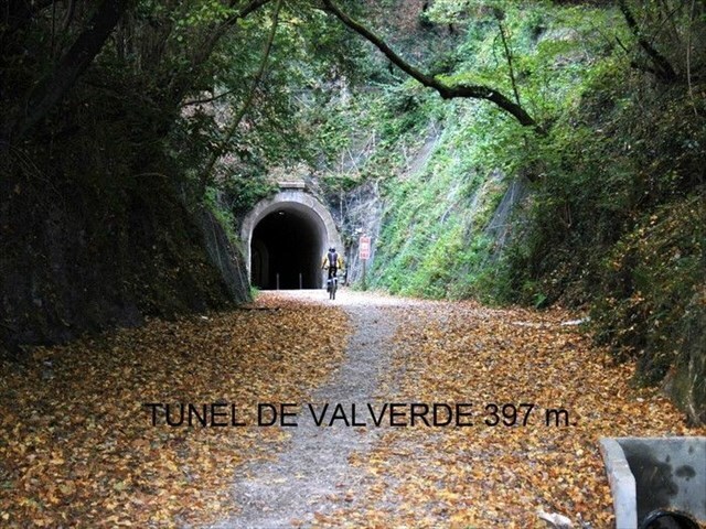 El túnel de Valverde mide 380 metros y salva las faldas del monte Cueto. Se encuentra muy cerca del bosquecillo de Valverde. Sus embocaduras son de sillería y mampostería caliza y la bóveda de ladrillo. La sección es de arco de medio punto, salvo en la desembocadura sur que es apuntado.