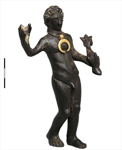 El hallazgo más espectacular vinculado a esta época es el Neptuno del Pico Cueto. Se trata de una pequeña estatuilla de bronce, de unos 12 centímetros, que representa a un Neptuno joven con rasgos infantiles, un delfín en la mano y un creciente lunar de oro al cuello.