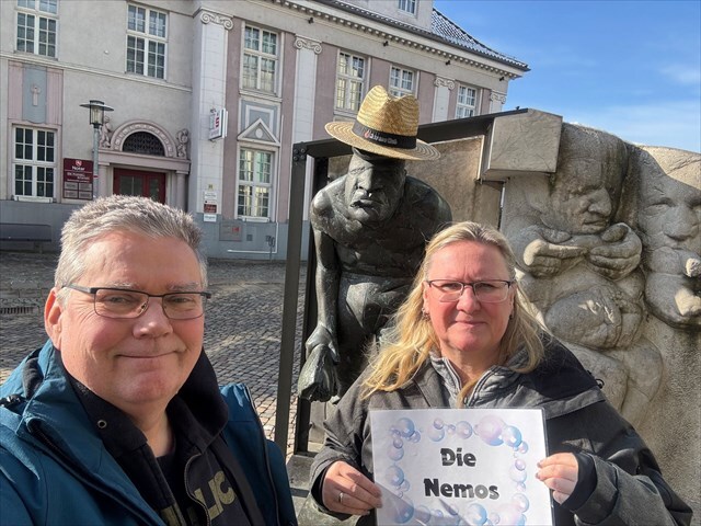 4. Optional: Ziehe für Bilder den beiden Skulpturen einen neuen Hut auf, spanne einen Regenschirm auf oder mache etwas anderes.