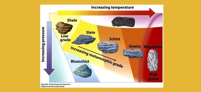 Metamorphism of rocks is a geological process in which the mineral composition and structure of the original rock are changed due to high temperature, pressure, or chemically active fluids. It occurs in the solid state, during which the components of the rock are rearranged and new minerals are formed, and it can affect both igneous and sedimentary rocks. There are three main types of metamorphis.