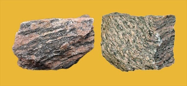 Gneiss is commonly linked to major tectonic and mountain-building events, where felsic igneous rocks are buried deeply and exposed to high pressure and temperature from nearby magmatic activity and tectonic forces. Some of the oldest rocks on Earth, such as those in western Greenland, are gneisses over 3.5 billion years old. The term “gneiss” originates from Old German and means “bright” or “sparkling.”