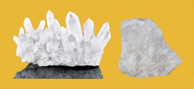 1) Wie würden Sie die Milchquarzkristalle mit eigenen Worten beschreiben? 2) Beobachten Sie die Milchquarzkristalle an den Ausgangskoordinaten. Wie würden Sie ihre Festigkeit oder Widerstandsfähigkeit bei Berührung beschreiben?