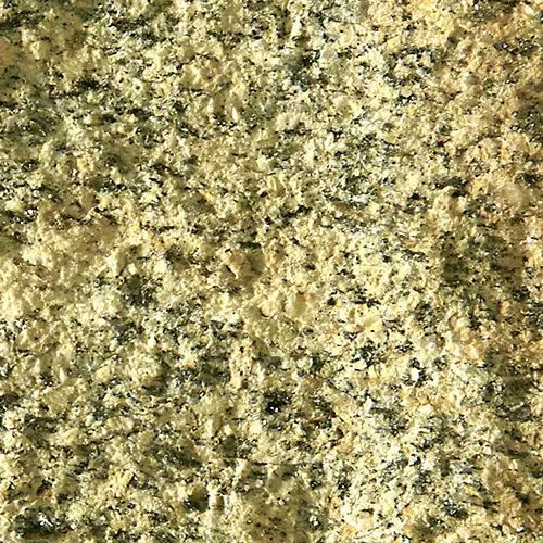 Granite à grain moyen à grossier, sa teinte beige dorée à crème, résultant d'une forte proportion de feldspaths potassiques clairs et d'une faible teneur en minéraux sombres, lui donnant une apparence lumineuse et chaleureuse.