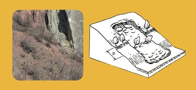 5) Na základě vašeho předchozího pozorování vytvořte nákres, na kterém bude jasně znázorněná podoba zdejšího svahu před sesuvem a po něm. Vaše malůvky mi pošlete společně s odpověďmi - nenahrávejte je k logu!
