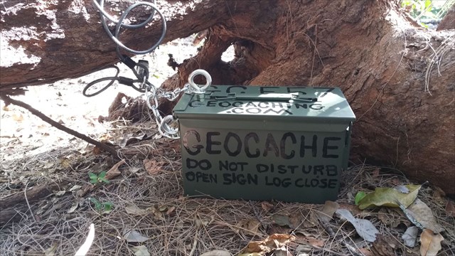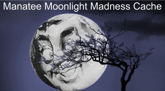 My friend Seadog and I stashed this cache during a Full Moon kayak paddle - thus the name. Yes, people who kayak and trek through the woods in the middle of the night are a little mad! It is in a small Rubbermaid container. Items in the cache include Hot Wheel cars, dinosaurs, glitter hair clips, stickers, golf tees, bubbles, etc. Please feel free to take a memento of your find and leave something for future GeoCachers. Also, don't forget to sign and date the log.