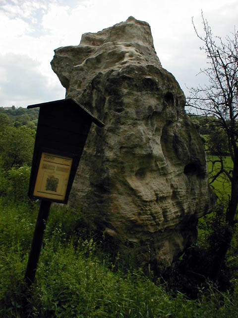In flat terrain unbelievable great sand-stone rock. 8 meter high. The best way to CACHE is N 50°13,214 a E 014° 09,525, take a path throw to Cliff needle.