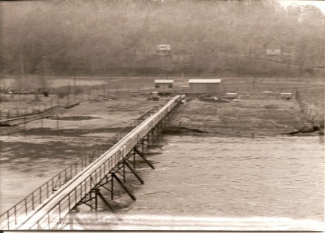 Kolejová lávka přes Berounku během budování štoly (foto INRI)