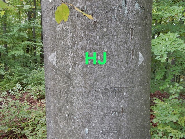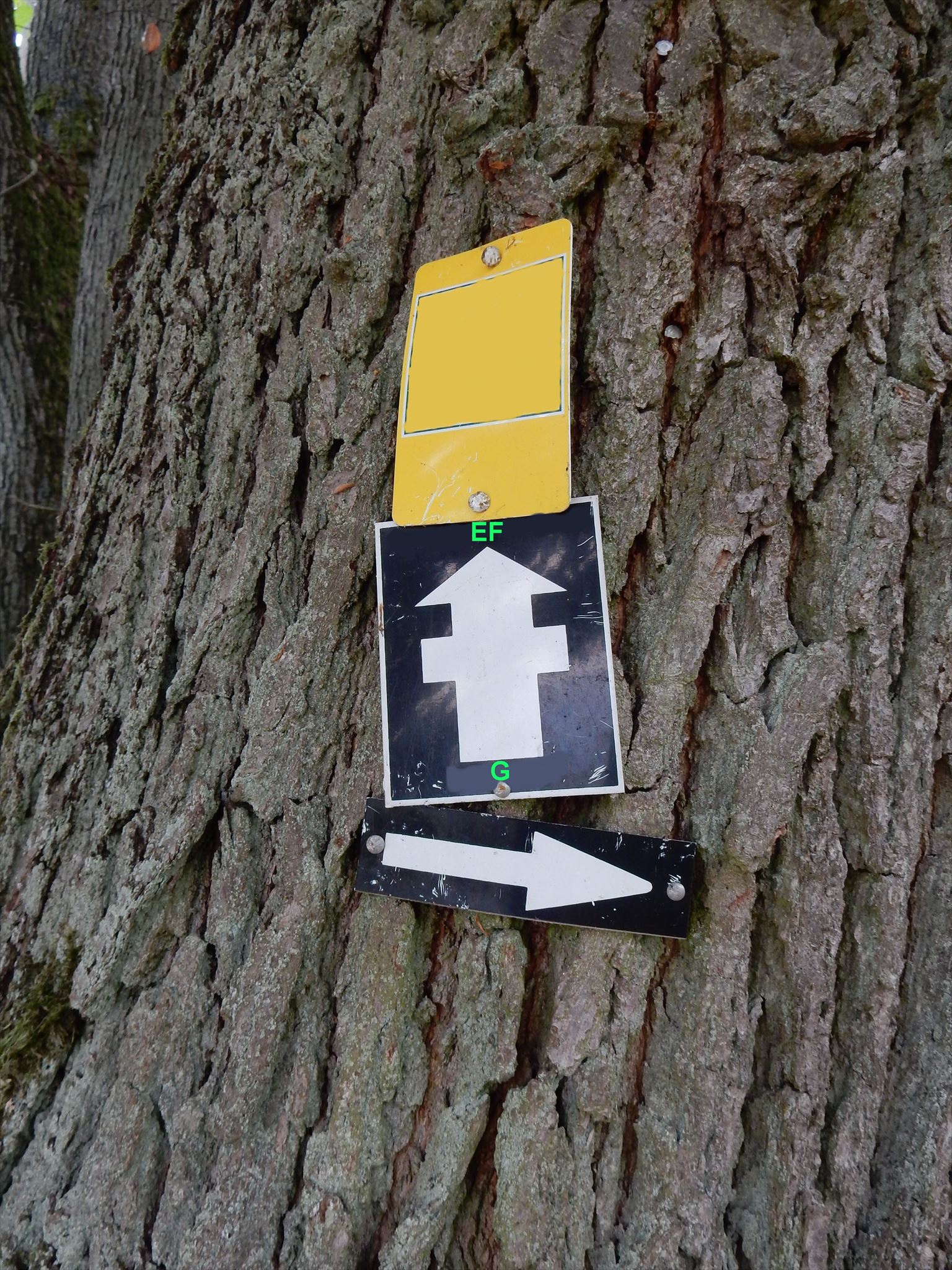 Baum. Auf dem unteren ist ein Pfeil, der bergauf zeigt.