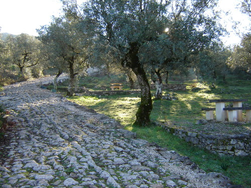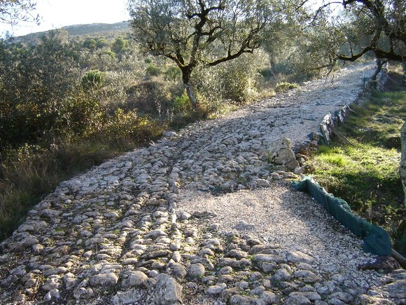Até hoje chegou, em boas condições, um troço com 100 metros de comprimento e quatro metros de largura máxima, que terá sido construída entre os séculos I a.C. e o I d.C. Concebido para facilitar o escoamento de ferro explorado na região, o caminho deveria seguir para Tomar.