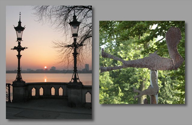 Erneut habe ich eine Brücke gewählt, die durch ihre spezifischen Laternen identifiziert werden muss. In der näheren Umgebung wirst du das abgebildete "Kunstwerk" entdecken, von wo du die Brücke aus einer anderen Perspektive bewundern kannst. Nähere dich jetzt der Brücke und nach ein paar Schritten wirst du den Cache entdecken. Vielleicht erinnerst du dich ja auch, in welchem Jahr der Mystery erstmals versteckt bzw. freigeschaltet wurde.